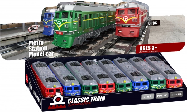 Ontdek de leuke vliegwieltrein met afmetingen 18x4x6 cm, ideaal voor kinderen, verkrijgbaar in drie kleurvarianten: rood, blauw en groen.