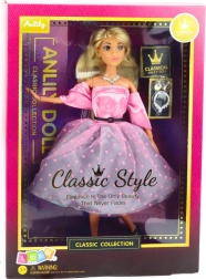 Deze pop onderscheidt zich door verfijnde details – lang blond haar, uitgesproken gelaatstrekken en subtiele make-up geven haar een uniek karakter. Dankzij de beweegbare ledematen kan de pop gemakkelijk van pose veranderen en verschillende verhalen naspelen uit het dagelijks leven of van een sprookjesbal.