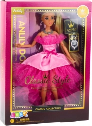 De pop Anlily in een luxueuze roze jurk biedt kinderen de mogelijkheid om zich onder te dompelen in een fantasiewereld en prinsesje te spelen. Haar jurk is tot in de puntjes uitgewerkt, met lagen tule en sprankelende details, waardoor het een uitzonderlijk stuk speelgoed is. Een lange blonde vlecht en uitgesproken gelaatstrekken versterken haar charme. Dankzij de bewegende ledematen kan de pop in verschillende houdingen worden gezet, worden omgekleed en kunnen diverse scènes worden nagespeeld – bal, feestelijk of alledaags.