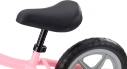 De constructie met een stevige stalen framebuis en stille 12" EVA-wielen zorgt voor een soepele en comfortabele rit zonder risico op een lekke band. De verstelbare zadelhoogte (33,5–48 cm) en stuurhoogte (51–56 cm) maken het mogelijk de loopfiets aan te passen aan de huidige lengte van het kind. De stuurbreedte van 41 cm en de korte reikwijdte naar de handgrepen ondersteunen zeker sturen.