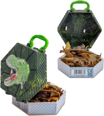 Ontdek de geweldige wereld van dinosaurussen met deze set van 6 figuren, elk 8-9 cm lang, opgeborgen in een praktische doos met T-Rex-motief en handvat voor comfortabel dragen. Meer tonen