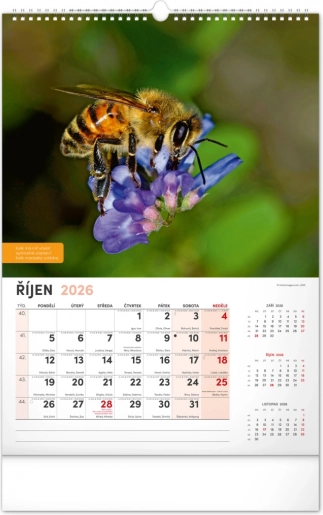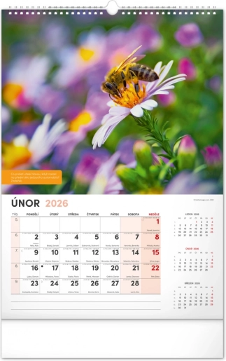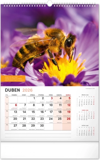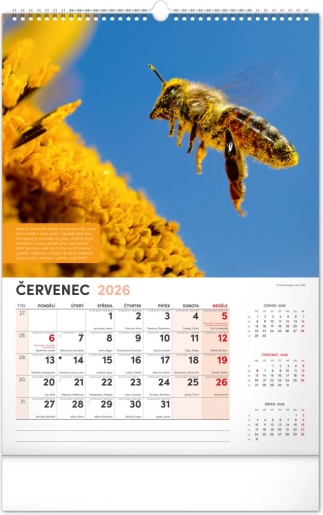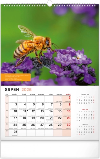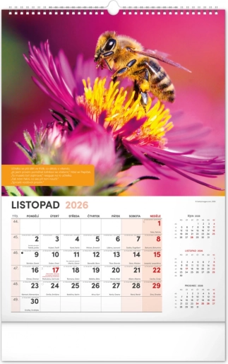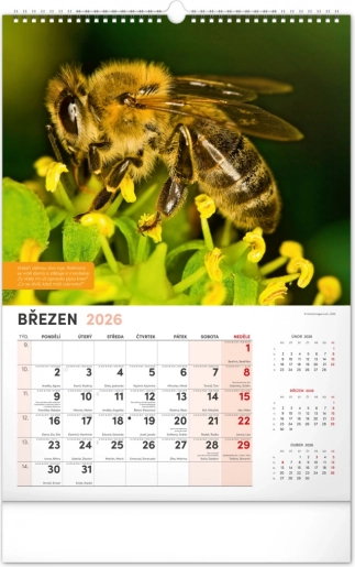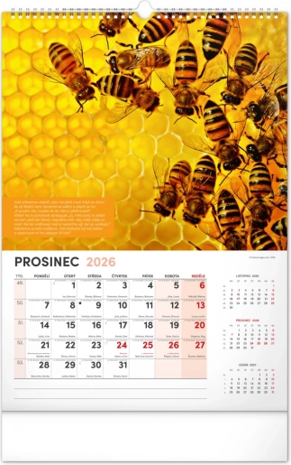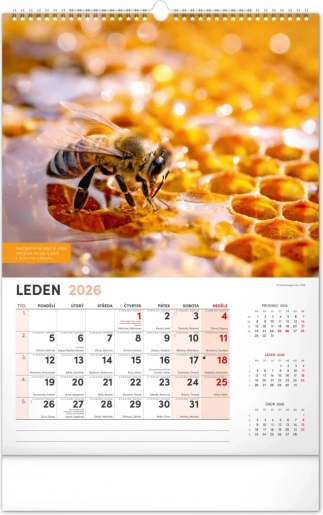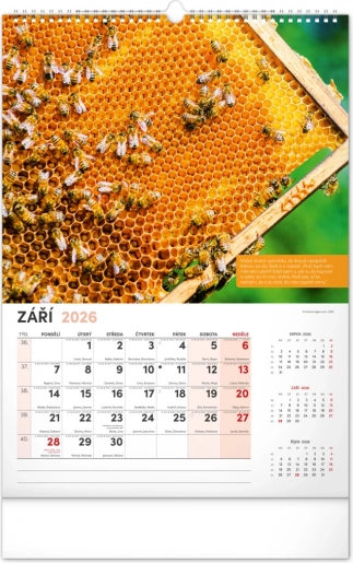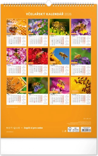 Wandkalender voor imkers met weerspreuken, wijsheden en taken voor elke maand. Bevat een Tsjechische kalender.