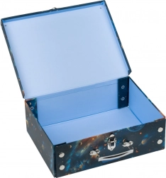 De koffer heeft versterkte hoeken die veilig gebruik zonder beschadigingsgevaar mogelijk maken. Ideaal voor het bewaren van schoolbenodigdheden, speelgoed of andere kleine items die een veilige plek nodig hebben. Klassieke sluiting met gesp en metalen handvat zorgen voor gemakkelijk en comfortabel dragen.