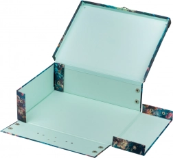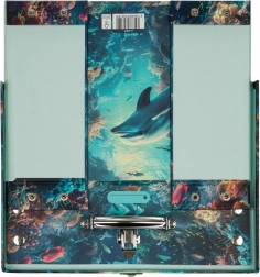 Praktische opvouwbare schoolkoffer Dolfijn is de ideale metgezel voor kunsteducatie, speelgoed of kleinigheden. Dankzij het ingenieuze systeem van drukknopen kan de koffer met metalen hoeken