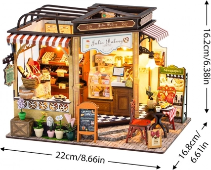 Ontdek de betoverende wereld van miniaturen met het huisje Julia’s Bakkerij. De bouwset biedt ontspannende momenten tijdens het bouwen en aanpassen, met oog voor detail en LED-verlichting.