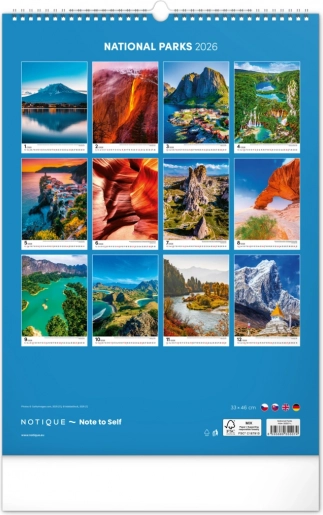 Ontdek het hele jaar door de schoonheid van nationale parken wereldwijd met onze kalender. Deze kalender biedt adembenemende natuurfoto’s in staand formaat, ideaal voor elk interieur.