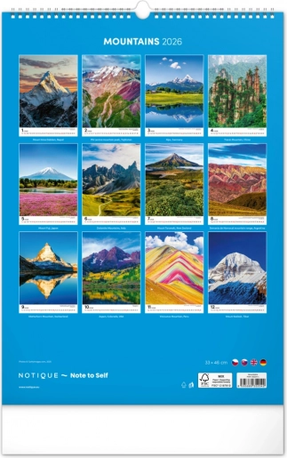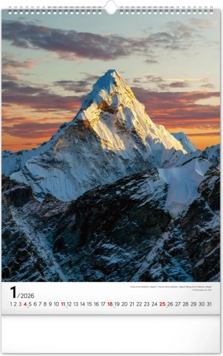 Wandkalender Bergen 2026 biedt adembenemende foto’s van iconische bergen van over de hele wereld, ideaal voor liefhebbers van natuur en avontuur.