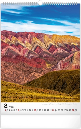 Krijg dagelijks inspiratie met deze prachtige wandkalender die je meeneemt langs de landschappen van Nieuw-Zeeland, IJsland, Frankrijk en de VS. Elke maand word je betoverd door een nieuw uitzicht op majestueuze pieken die je reislust aanwakkeren en rust brengen in je huis of kantoor.