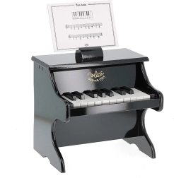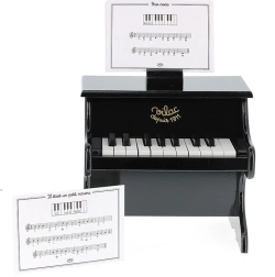Stijlvolle zwarte kinderpiano van hoogwaardig hout met 18 toetsen, perfect voor kleine muzikanten vanaf 3 jaar. Inclusief 10 pagina’s bladmuziek met eenvoudige liedjes. Een geweldig speelgoed dat muzikaal talent stimuleert, coördinatie ontwikkelt en aanzet tot de eerste speelmomenten.