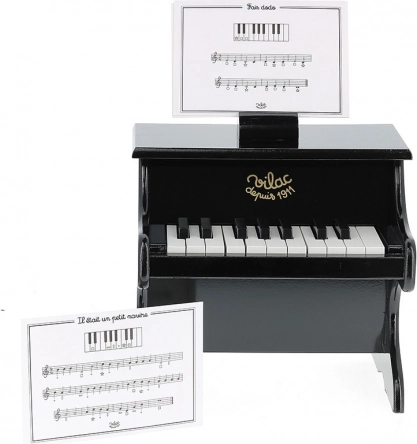 De houten VILAC-piano is een mooie en duurzame speelgoedpiano voor de eerste muzikale stapjes. Dankzij de compacte afmetingen past hij in elke kinderkamer en het elegante zwarte design springt meteen in het oog. Het is geen volwaardig muziekinstrument, maar een kwalitatief stuk speelgoed om de wereld van klanken te ontdekken.