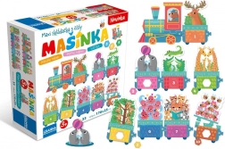 Met de Granna Mašinka wordt tellen echt leuk! Deze maxi-puzzel laat kinderen een trein samenstellen, wagons koppelen, dieren tellen en de juiste cijfers leren toewijzen.
