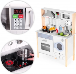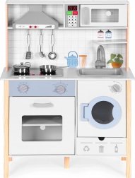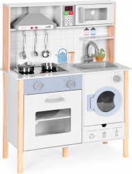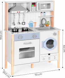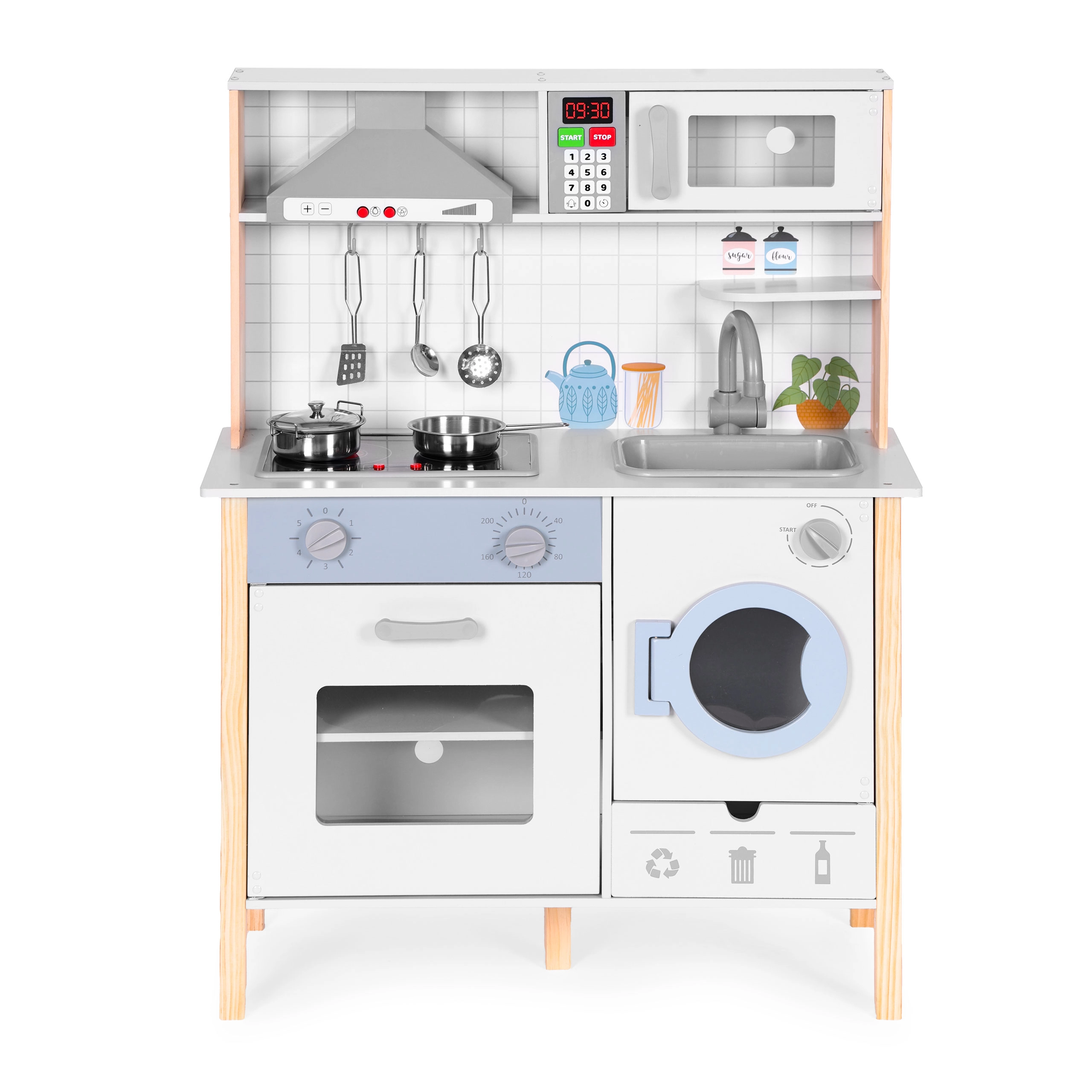 De keuken bevat veel handige functies: van verlichting en geluidsfunctie in de afzuigkap, via een wasmachine tot te openen keukenkastjes. De speelserie omvat ook handige keukengereedschappen die in de set zijn inbegrepen, zodat kinderen meteen kunnen beginnen met spelen.