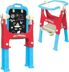 De hoogte en de hoek van het bord zijn verstelbaar om aan te passen aan de lengte en leeftijd van het kind. De set bevat alle benodigde accessoires: 12 potloden, 12 gekleurde krijtjes, 4 uitwisbare stiften, 10 A4-vellen en een spons, samen met een organizer voor de accessoires. Een stabiele basis en een stevig stoeltje zorgen voor comfort tijdens creatief spel en bevorderen de fijne motoriek en het ruimtelijk inzicht.