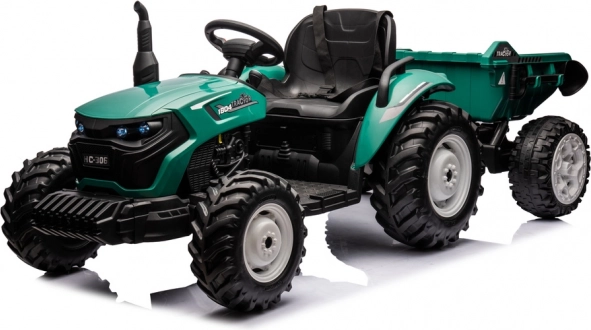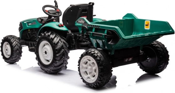 Beleef het plezier van rijden met deze accutrekker, geleverd met een donkergroene aanhanger. Dankzij de krachtige 24V-accu en de robuuste constructie is hij ideaal voor kleine boeren en nieuwsgierige ontdekkers.