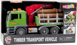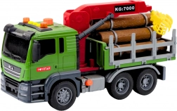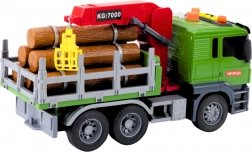 De vrachtwagen op schaal 1:14 is uitgerust met bewegende delen en interactieve functies, zoals licht- en geluidseffecten – achteruitrijgeluid, waarschuwingssignaal, claxon en knipperende waarschuwingslampen. Hij kan handmatig worden bediend; de kraanarm heeft knoppen voor het heffen en neerlaten van houten stammen, wat de verbeelding prikkelt en de motorische vaardigheden ontwikkelt.