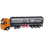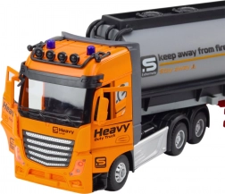 De tankwagen is uitgerust met te openen cabinedeuren, licht- en geluidseffecten die met de afstandsbediening worden geactiveerd, en waarschuwingsstickers die het gevoel van een echt brandstoftransportvoertuig geven. De oranje-zwarte kleurstelling, dynamische lijnen en zorgvuldig uitgewerkte details trekken de aandacht en geven het voertuig een professionele uitstraling.