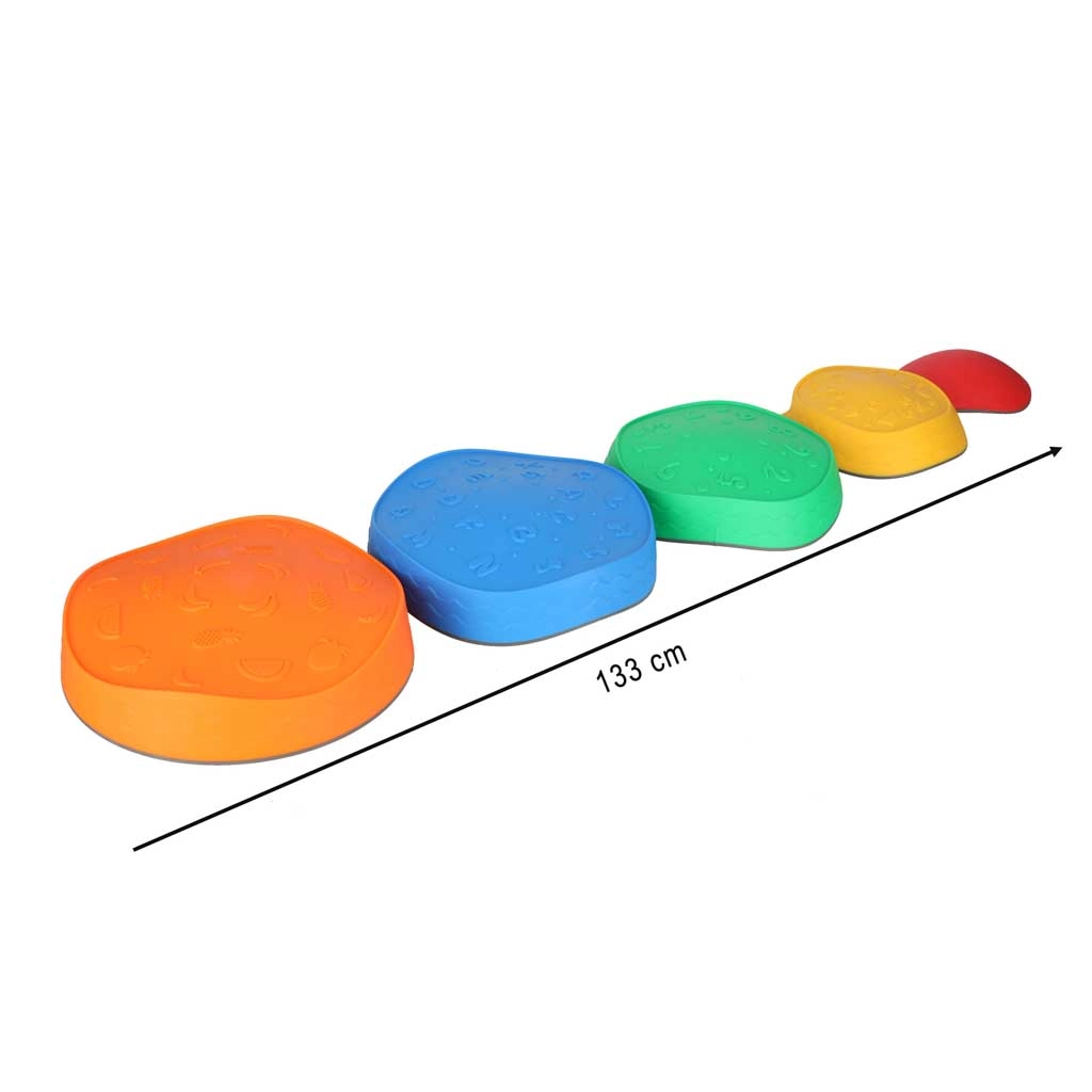 Ontdek een leuke en veilige manier om de motoriek van kinderen te ontwikkelen met een set van vijf balansstenen. Ze ondersteunen evenwicht, bewegingscoördinatie en sensorische integratie. Elke steen heeft een andere kleur, vorm en een getextureerd oppervlak voor rijke tactiele prikkels, met antislipafwerking en duurzaam materiaal voor veilig spelen thuis, in de kleuterklas en in therapeutische praktijk.