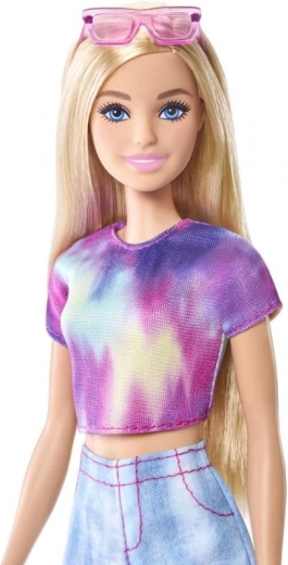 De Barbie “Malibu”-pop brengt een frisse zomerse stijl en veel speelmogelijkheden. Dankzij de batik crop top, denim short en stijlvolle bril is ze klaar voor elke uitdaging – van speurwerk op het strand tot stedelijke avonturen. Volledig beweeglijke ledematen maken natuurlijke poses en speelse scènes mogelijk.