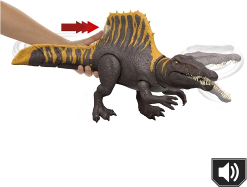 De imposante Spinosaurus-figuur brengt een flinke dosis actie in kinder- én verzamelhanden. Dankzij de opvallende rugzeil, de gedetailleerde huidtextuur en de openende kaken oogt de dinosaurus levensecht en klaar voor de aanval. Geluidseffecten en het staartmechanisme “tail thrasher” geven extra dynamiek aan het spel.