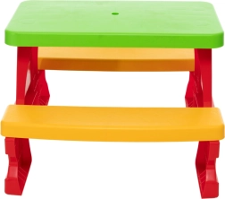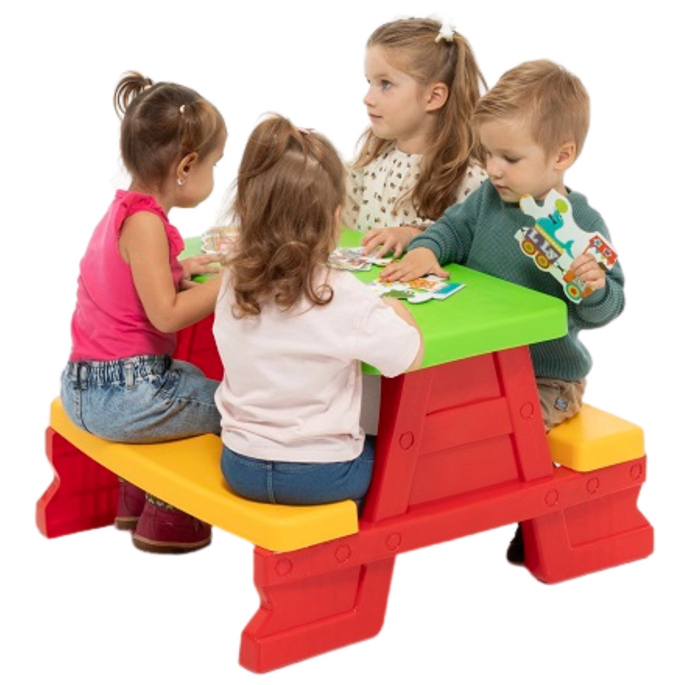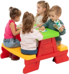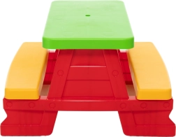 De kinder tuintafel Dorex is ideaal voor buitenactiviteiten voor kinderen, zoals spelen en eten. De levendige kleuren en robuuste constructie nodigen uit tot gezamenlijk gebruik.