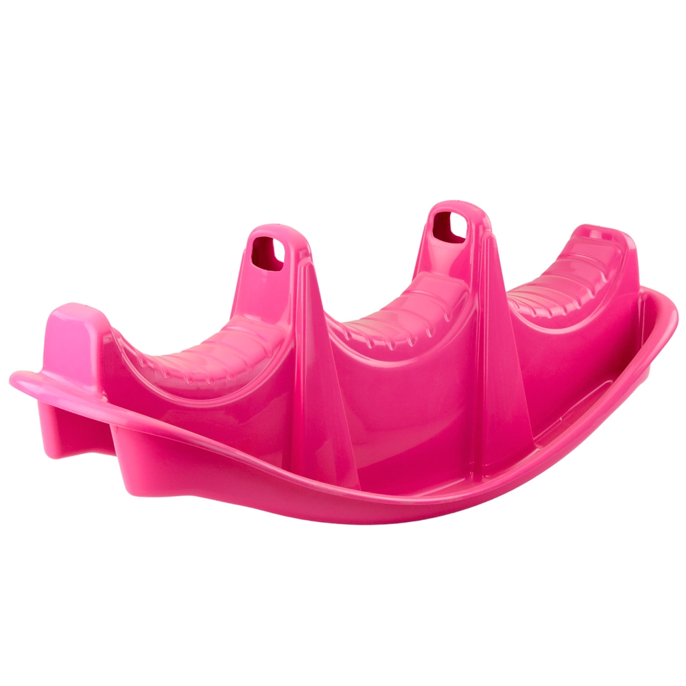 De driepersoons wip van het type rocker in roze is perfect voor plezier en voor de ontwikkeling van evenwicht en coördinatie in een kindergroep. Gemaakt van duurzaam plastic, met drie ergonomisch gevormde zitjes en comfortabele handgrepen, zorgt de wip voor veilig spelen dankzij afgeronde randen en een stevige constructie.