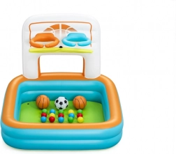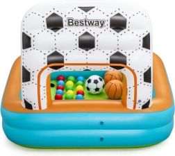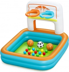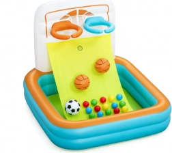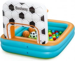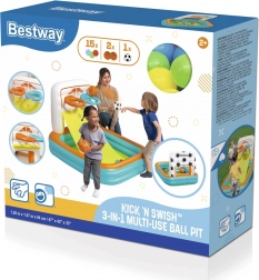 Het Opblaasbare Speelcentrum Bestway Kick 'N Swish™ is de ideale keuze voor actieve entertainment van uw kinderen. Dit multifunctionele zwembad combineert basketbalhoops met een terugkeerramp die een soepele spelervaring garandeert, en minidoel voor trainingschoten op doel. Voeg 15 gekleurde ballen toe en verander het zwembad in een gekleurde speelparadijs waar kinderen kunnen spelen en ontspannen.