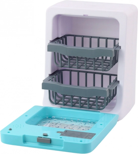 Dankzij geluids- en lichteffecten en de tijdinstellingsfunctie kan het kind zich een echte gastheer van het huishouden voelen. De bediening gebeurt via een touchpanel met een rode knop die het gekozen programma start.