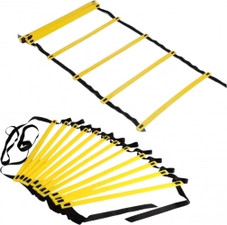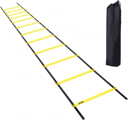 De trainingsladder is gemaakt van duurzaam PVC en polythyleen banden, waardoor hij bestand is tegen intensief gebruik, zowel in de zaal als buiten. De ladder heeft 12 verstelbare sporten, waarmee je de afstand tussen de sporten kunt aanpassen aan specifieke oefeningen en het niveau van de gebruiker.