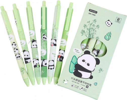 Set gelpennen met een schattig pandamotief is niet alleen een praktisch schrijfinstrument, maar ook een stijlvolle aanvulling op je school- of kantooruitrusting. Elke pen in de set is versierd met een panda tussen bamboe, wat het een ideale keuze maakt voor kinderen, jongeren en fans van originele schrijfwaren.