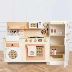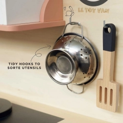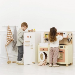 Geef kinderen hun eigen culinaire koninkrijk met deze stijlvolle houten keuken van LE TOY VAN. Biedt realistische functies en rijk accessoirespakket voor uren creatief spel: gootsteen, oven, wasmachine, magnetron, draaibare kranen en werkende knoppen. Gemaakt van FSC-gecertificeerd hout en geschilderd met niet-giftige verf op waterbasis – een veilige en duurzame keuze voor elke kinderkamer.