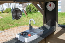 Het schattige tuinhuisje Vašek is de ideale plek voor kinderen om hun verbeelding te ontwikkelen en veilig te spelen. Met een groot raam en een knusse kitchenette met kookplaat, gootsteen en extra accessoires, beleven je kinderen uren speelplezier.
