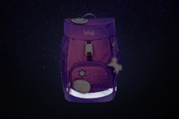 Reflecterende elementen op de rugzak verhogen de veiligheid van kinderen bij beperkte zichtbaarheid.