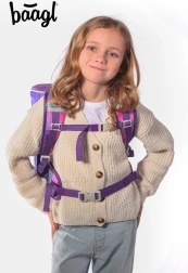 De creativiteit van het kind kan tot uiting komen dankzij het unieke systeem van verwisselbare badges op de tas. Veiligheid wordt gegarandeerd door reflecterende elementen en betrouwbare ritsen van het merk YKK. Hij is ontworpen met een stevige bodem en een gewicht van 1.150 g, zodat hij zijn vorm houdt en stabiel blijft staan.