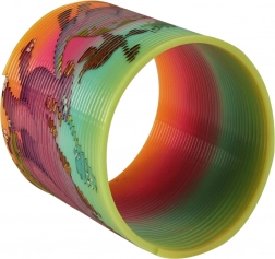 De magische spiraal met vrolijke dinosaurusmotieven valt op door de felle kleuren en de vloeiende beweging. Kinderen kunnen hem uitrekken, indrukken, van de ene naar de andere hand laten gaan of bekijken hoe hij elegant de trap af “loopt”. Dit eenvoudige maar zeer vermakelijke speelgoed bevordert concentratie en helpt onrust te verminderen.