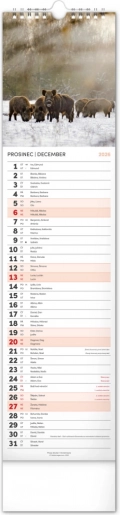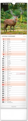 Ontdek de schoonheid van de natuur met onze langwerpige wandkalender die je meeneemt in de wereld van herten, vossen en bossen. 12 geweldige foto's begeleiden je door de weken van het jaar 2026.