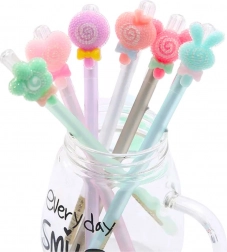 De pen combineert functionaliteit met een speels design, perfect voor zowel school als thuisgebruik. In de verpakking zitten 48 stuks, elk afzonderlijk verkocht; dessins worden willekeurig geselecteerd.