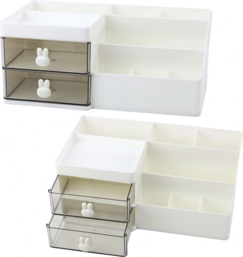 De volledige organizer is gemaakt van duurzaam plastic dat dagelijks gebruik aankan. Minimalistisch design en een neutraal kleurenschema passen perfect in elke ruimte – of het nu op kantoor, in de kinderkamer of in de thuiskantoor is. Ladegrepen in de vorm van konijntjes geven de organizer charme en een unieke stijl.