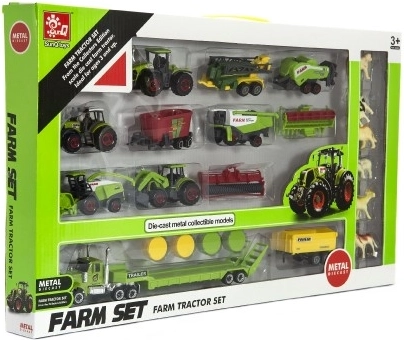 De set bevat verschillende typen voertuigen, waaronder tractoren en aanhangers. Met realistische looks en bewegende delen biedt dit speelgoed urenlang speelplezier. De verpakking van 53x31x5 cm houdt alle stukken goed georganiseerd.