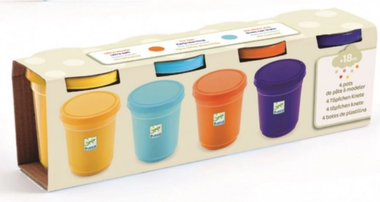 Geniet van plezier met de boetseerklei van DJECO, die 4 natuurlijke kleuren bevat en ideaal is voor de ontwikkeling van de creativiteit en motoriek van je kinderen.