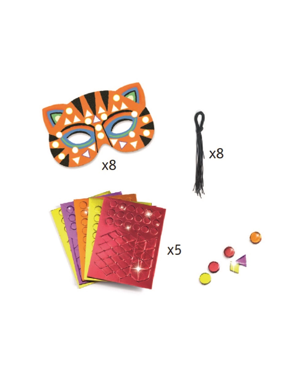 De creatieve set van DJECO biedt 8 papieren maskers met jungledieren die kinderen naar eigen fantasie kunnen versieren. Dankzij metallic stickers en een elastiek voor eenvoudig opzetten blijven de maskers goed zitten en komen ze mooi tot hun recht op een carnaval, verjaardagsfeest of tijdens spelletjes thuis. Knutselen ontwikkelt creativiteit, fijne motoriek en esthetisch gevoel.