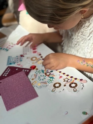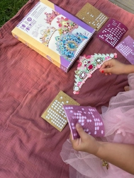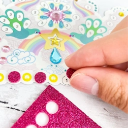 Zelfklevende “edelstenen” en glinsterende elementen zijn gemakkelijk aan te brengen, zodat ook jongere kinderen mooie, originele ontwerpen kunnen maken zonder rommel.