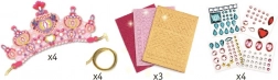 Verander knutselen in een magisch spel. De DJECO-set bevat alles wat nodig is zodat kinderen zelf vier unieke kronen kunnen ontwerpen en versieren. Met zelfklevende steentjes, glitter en decoraties ontstaan originele stukken die eenvoudig met het gouden lint vast te strikken zijn en comfortabel in het haar blijven zitten.