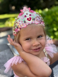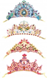 - Inhoud van de set: 4 kartonnen kronen, set zelfklevende glinsterende decoraties, gouden linten