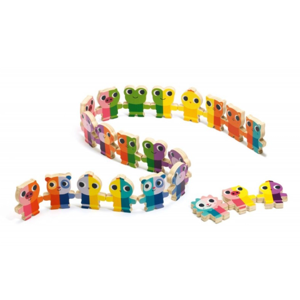 Geniet van uren speelplezier met het houten 3D domino van Djeco, ideaal voor de ontwikkeling van de fijne motoriek en het logisch denken bij kinderen. Dit domino bevat: