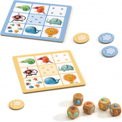 Elke speler gebruikt zijn eigen speelbord, waarop behaalde combinaties worden gemarkeerd met fiches met dierenafbeeldingen. Dit visuele element helpt om het spelverloop te begrijpen en het overzicht over de score te behouden.