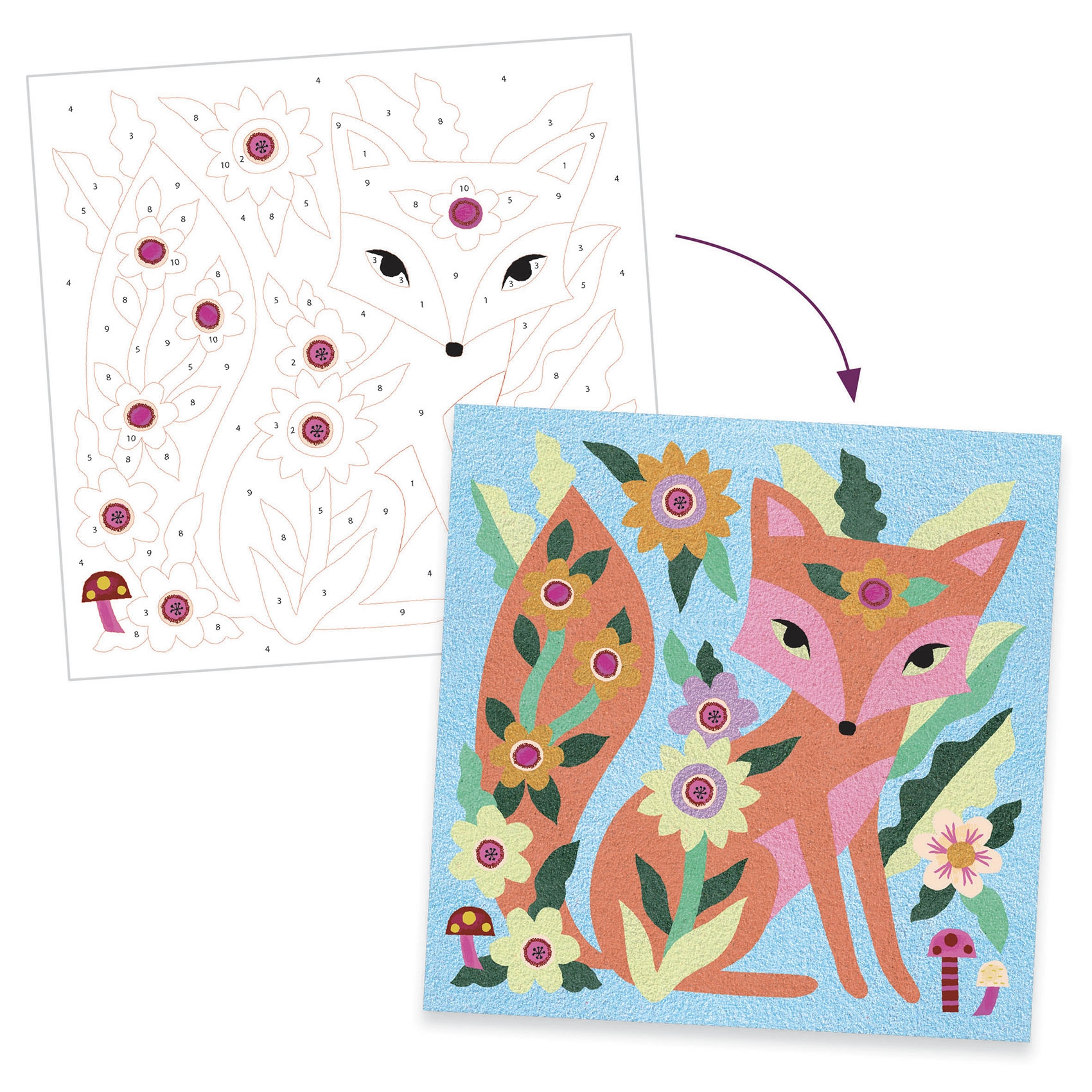 Deze populaire zandset biedt kinderen een makkelijke manier om prachtige illustraties van nachtdieren te maken. De vlakken op de kaartjes zijn zelfklevend – je hoeft ze alleen met het spateltje bloot te leggen en te bestrooien met gekleurd zand. Het overschot giet je eenvoudig terug in het doosje via de opening in de box. Fluorescerend zand zorgt ervoor dat de motieven magisch tot leven komen wanneer het licht uitgaat.