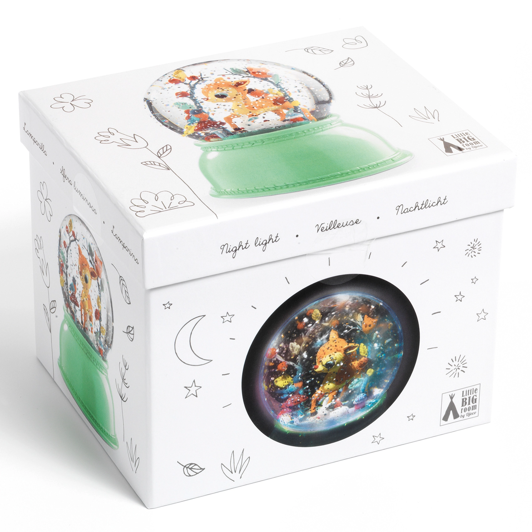 Het nachtlampje Hertje van Djeco is de ideale metgezel voor het rustig en ontspannen in slaap vallen van je kind. Het zachte licht creëert een aangename sfeer in de kamer en helpt angst voor het donker te overwinnen.