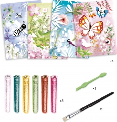 DJECO Zandstrooien Glinsterende Vlinders is een creatieve set waarmee kinderen prachtige en stralende vlinders kunnen maken door middel van zandstrooien.