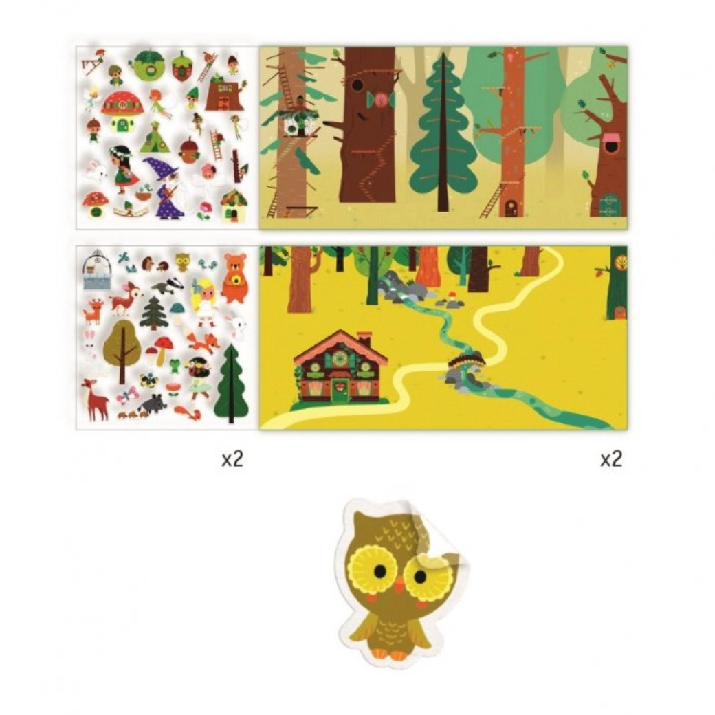 DJECO Verhaal met verplaatsbare stickers Mysterieus bos is een geweldig hulpmiddel om creativiteit en verbeeldingskracht te stimuleren. Maak een betoverd bos met behulp van verschillende stickers die je steeds opnieuw kunt verplaatsen. Deze activiteit bevordert de fijne motoriek en is geschikt voor kinderen van verschillende leeftijden.