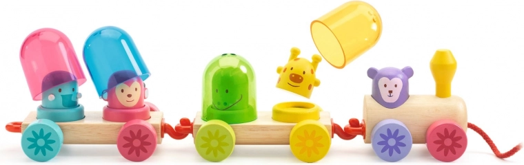 De Djeco Rainbow Train is een trein die plezier combineert met leren. Hij bestaat uit negen houten onderdelen en vier transparante, gekleurde koepels waarmee kinderen kunnen ontdekken hoe kleuren gemengd worden. Kinderen kunnen kleurveranderingen observeren en zo hun creativiteit en begrip van kleurcombinaties ontwikkelen. De trein is bedoeld om met een koord voortgetrokken te worden, wat de motorische vaardigheden en de oog-handcoördinatie van kinderen stimuleert.
